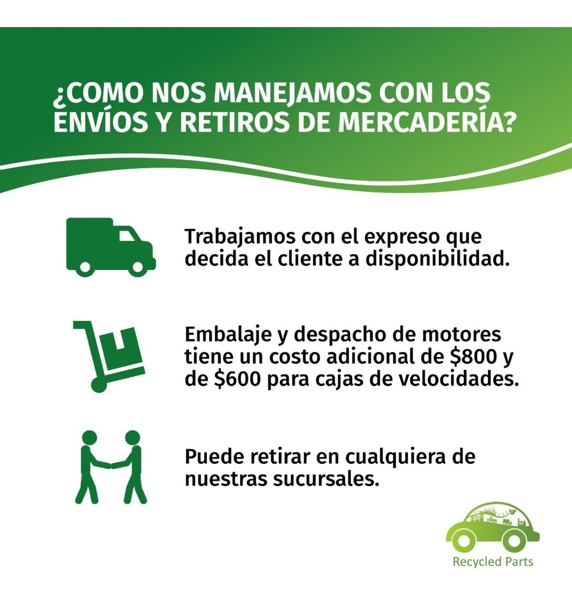 – Todos los productos se entregarán con su correspondiente factura y oblea RUDAC de acuerdo a la ley de autopartes usadas 25.761